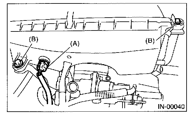 3. Remove the bolts (B) which install air cleaner case to stay.