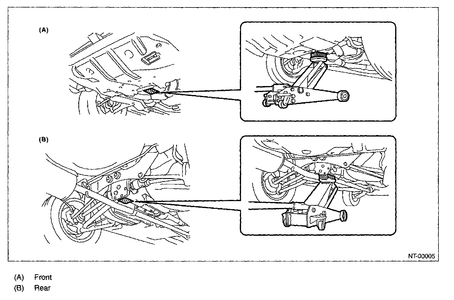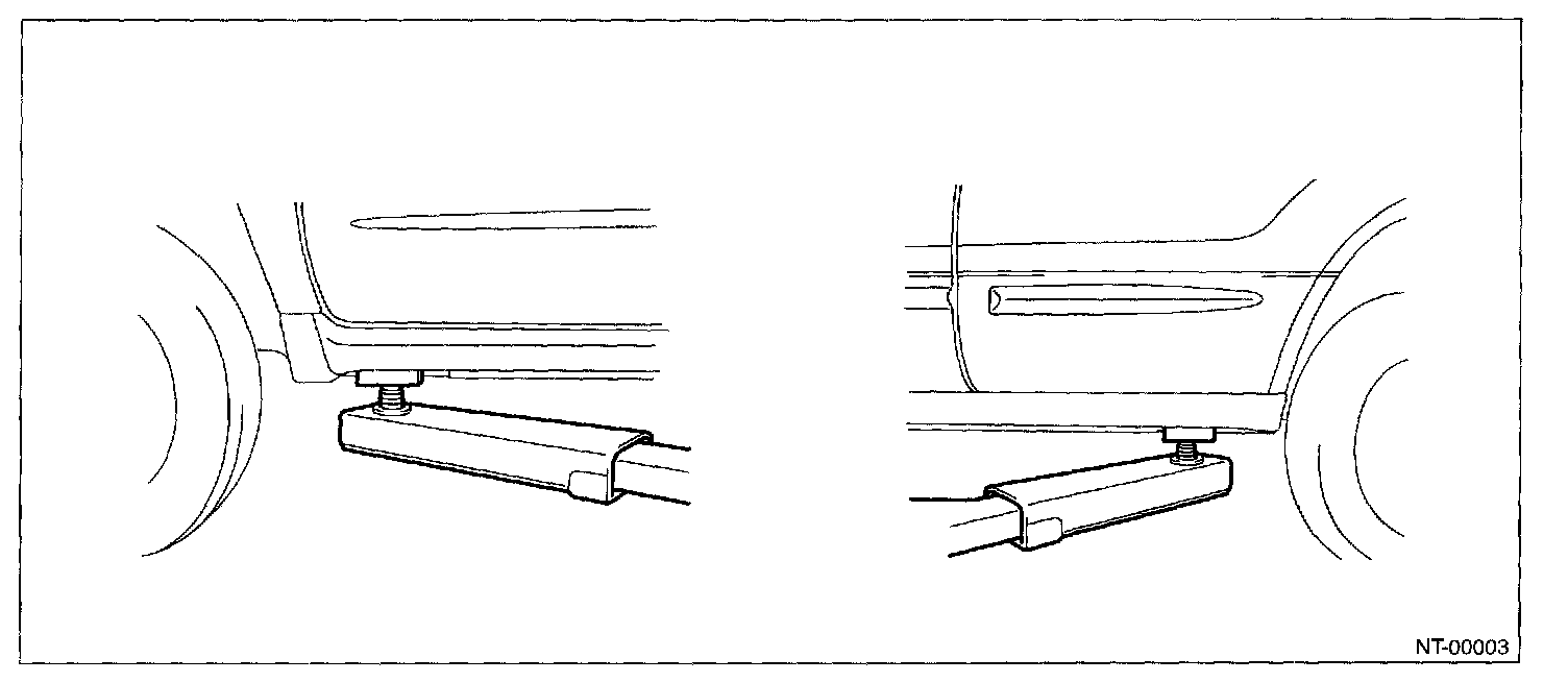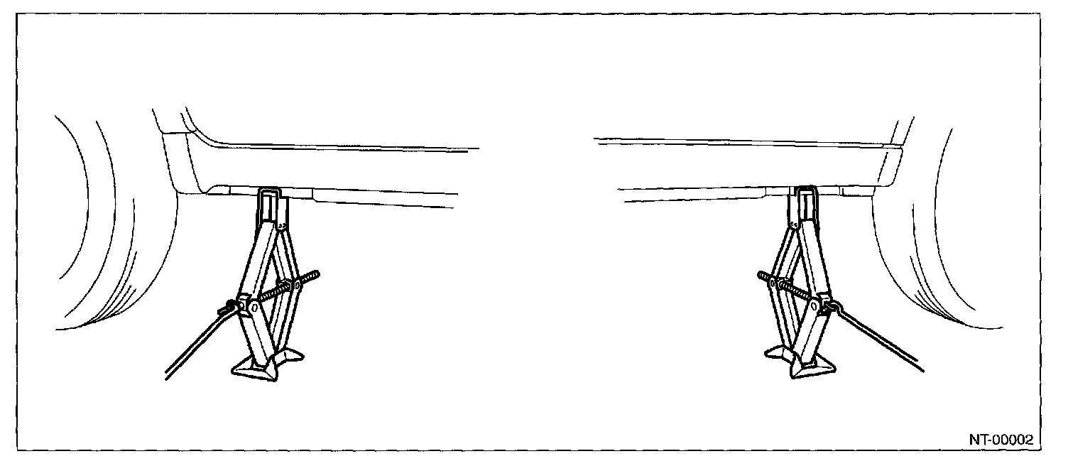 When using a lift or jack-ridged rack to raise a vehicle, always follow instructions concerning jack-up points weight limits to prevent the vehicle from falling, which could result in injury. Be especially careful to make sure the vehicle is balanced before raising it.