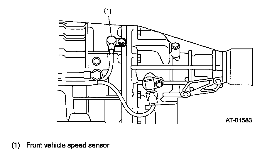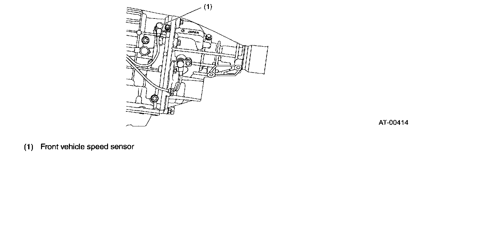 This vehicle speed sensor (output shaft speed sensor) is externally mounted on the transmission case. It detects the front wheel speed and sends sine wave signals (16 pulses per rotation) to the TCM.