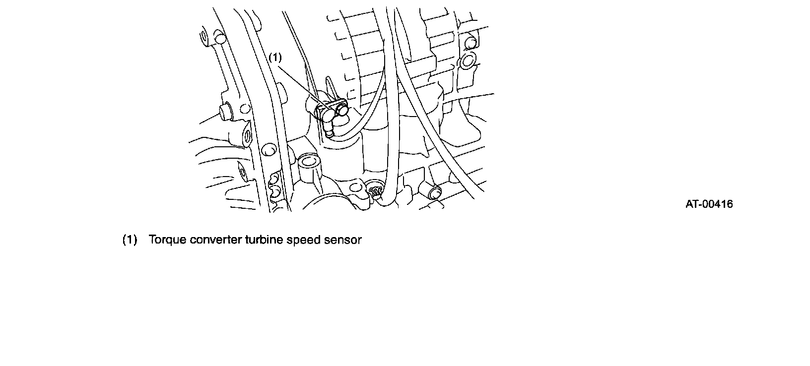 The torque converter turbine speed sensor (output shaft speed sensor) is externally mounted on the transmission case.