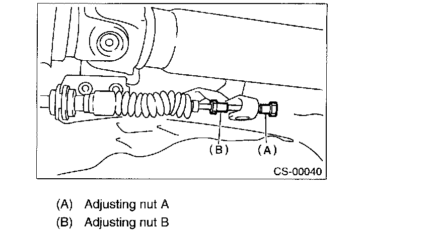 8. While preventing the adjusting nut B from moving with a wrench, tighten the adjusting nut A.
