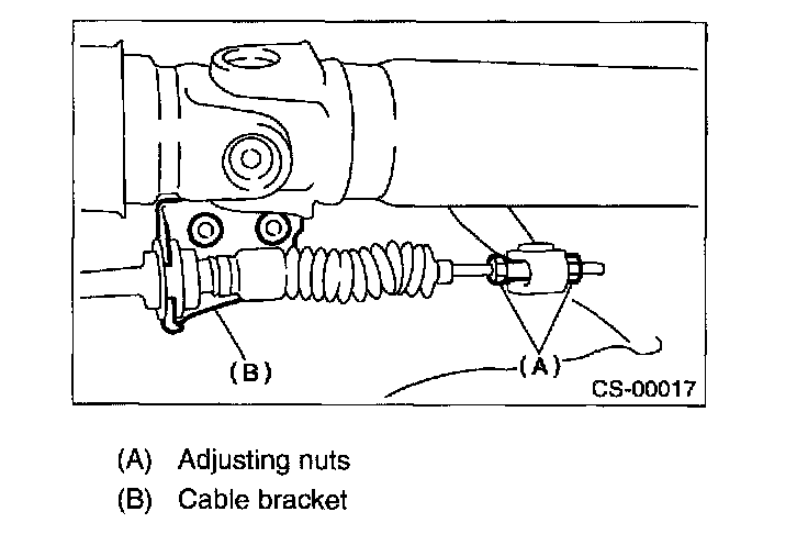 7. Insert the thread portion of the other inner cable and into connector hole of the select lever, and fix the other outer cable end to bracket.