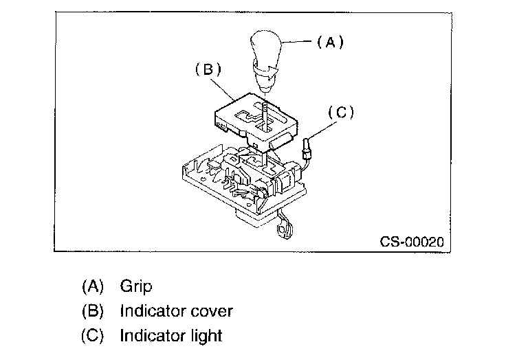 4. After completion of fitting, transfer the select lever to range "P"-"1", then check whether the indicator and select lever agree, whether the pointer and position mark agree and what the operating force is.
