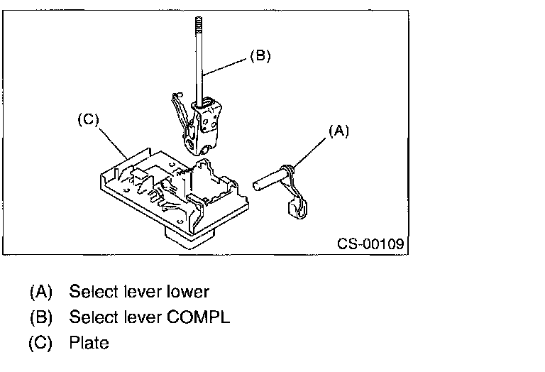 13. Remove the select lever lower, and then take away the select lever COMPL from plate.