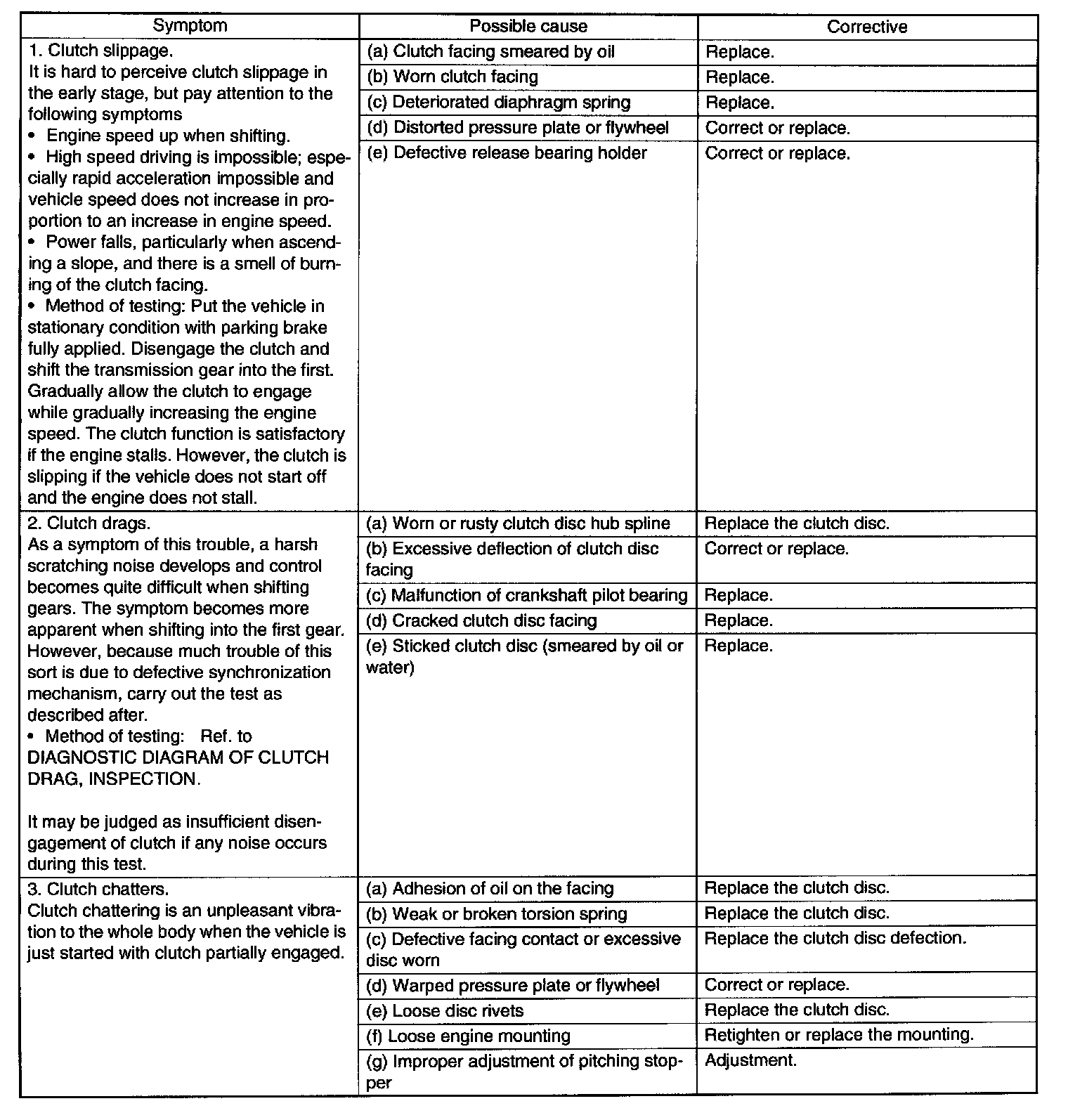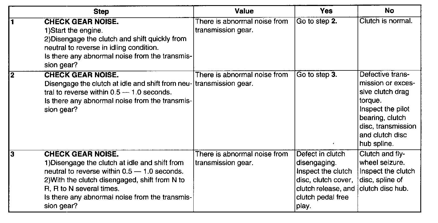 DIAGNOSTIC DIAGRAM OF CLUTCH DRAG