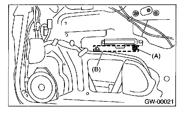 5. For adjustment of upper and lower ends of center pillar, loosen the adjusting nut (A) of B-channel (B).