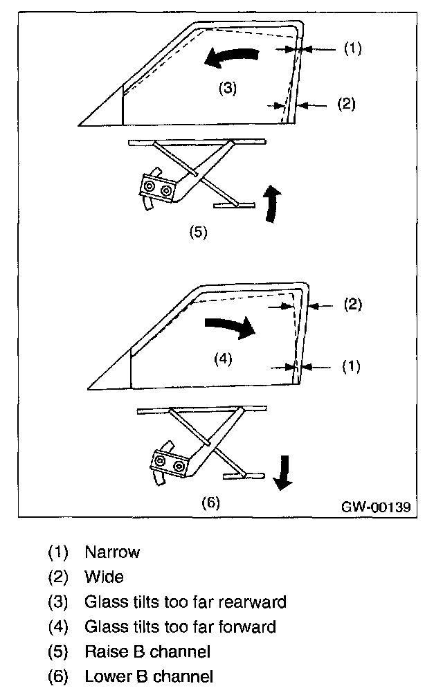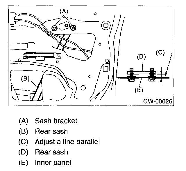 NOTE: Do not tilt the sash bracket to inner panel during adjustment Otherwise smooth regulator operation cannot be achieved.