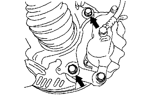 4) Remove the caliper body from housing, and suspend it from strut using a wire.
