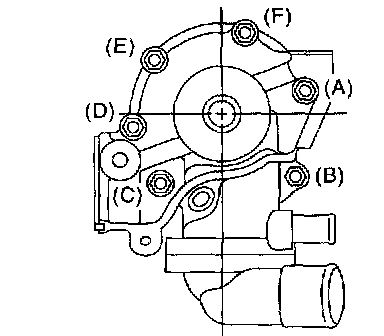 19) Loosen the bolts in alphabetical sequence as shown in the figure, and then remove water pump.