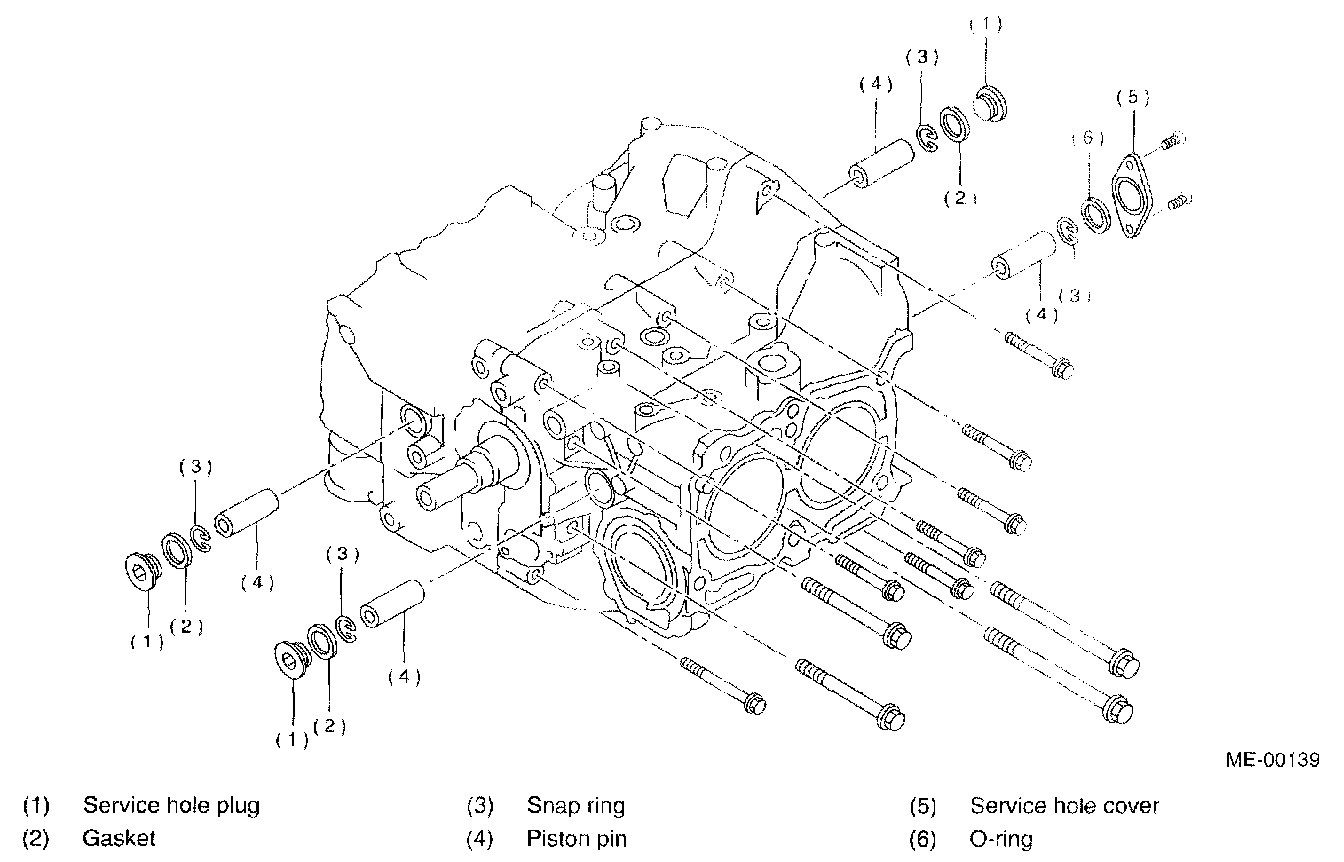 27) Remove the service hole cover and service hole plugs using hexagon wrench [14 mm (0.55 inch)].