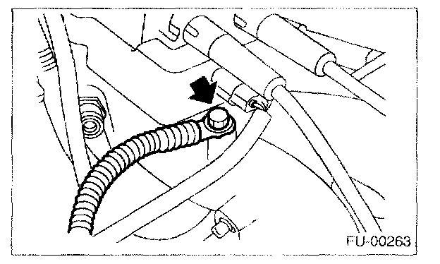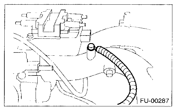 6. Disconnect the pressure regulator vacuum hose from the intake manifold.