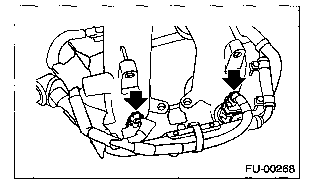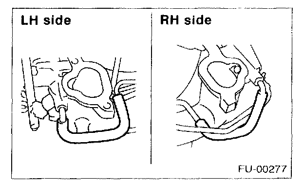 9. Tighten the two bolts which install the fuel pipes on the left side of intake manifold.
