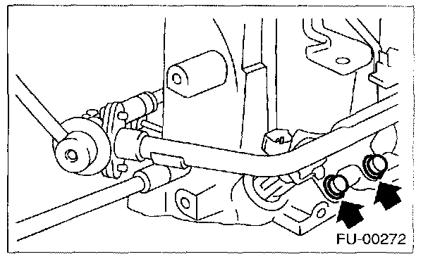 17. Remove the two bolts which hold fuel pipes on the left side of intake manifold.