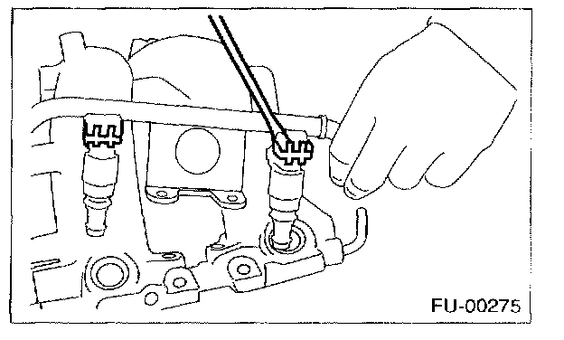 2. Remove the fuel injector while lifting up the fuel injector pipe.
