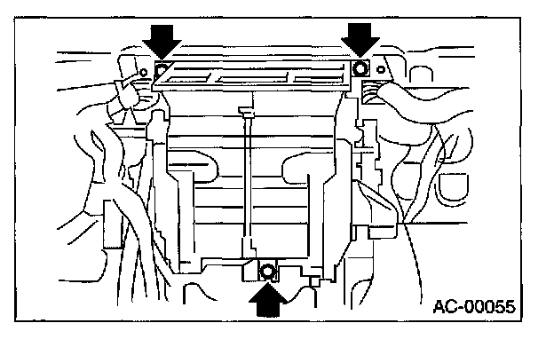 4. Remove the bolts securing expansion valve and pipe in engine compartment. Release the heater hose clamps in engine compartment to remove the hoses.