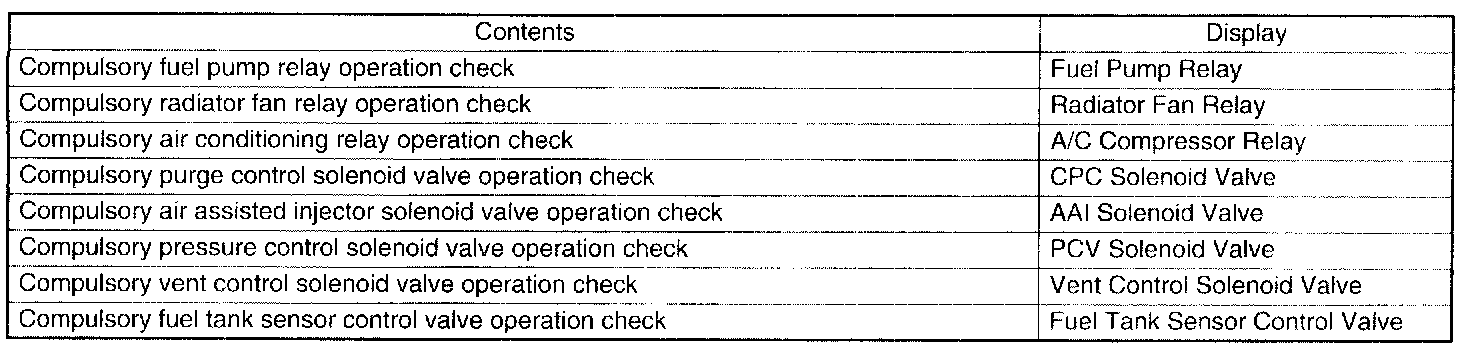 13. Pressing the [NO] key completes the compulsory operation check mode.The display will then return to the [[Actuator ON/OFF Operation]] screen.