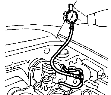 NOTE: If the fuel pressure is out of specification, check or replace the pressure regulator and pressure regulator vacuum hose.