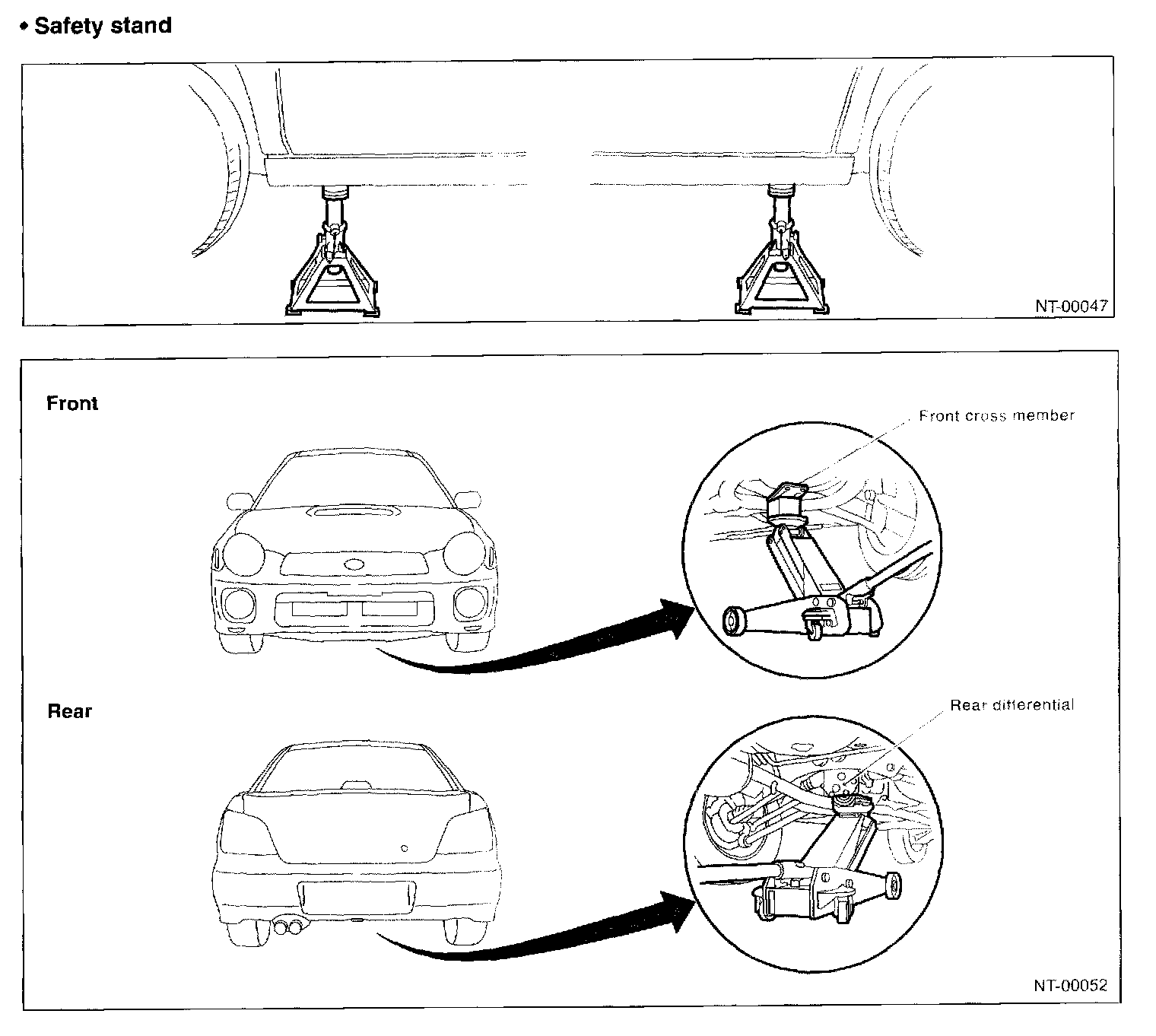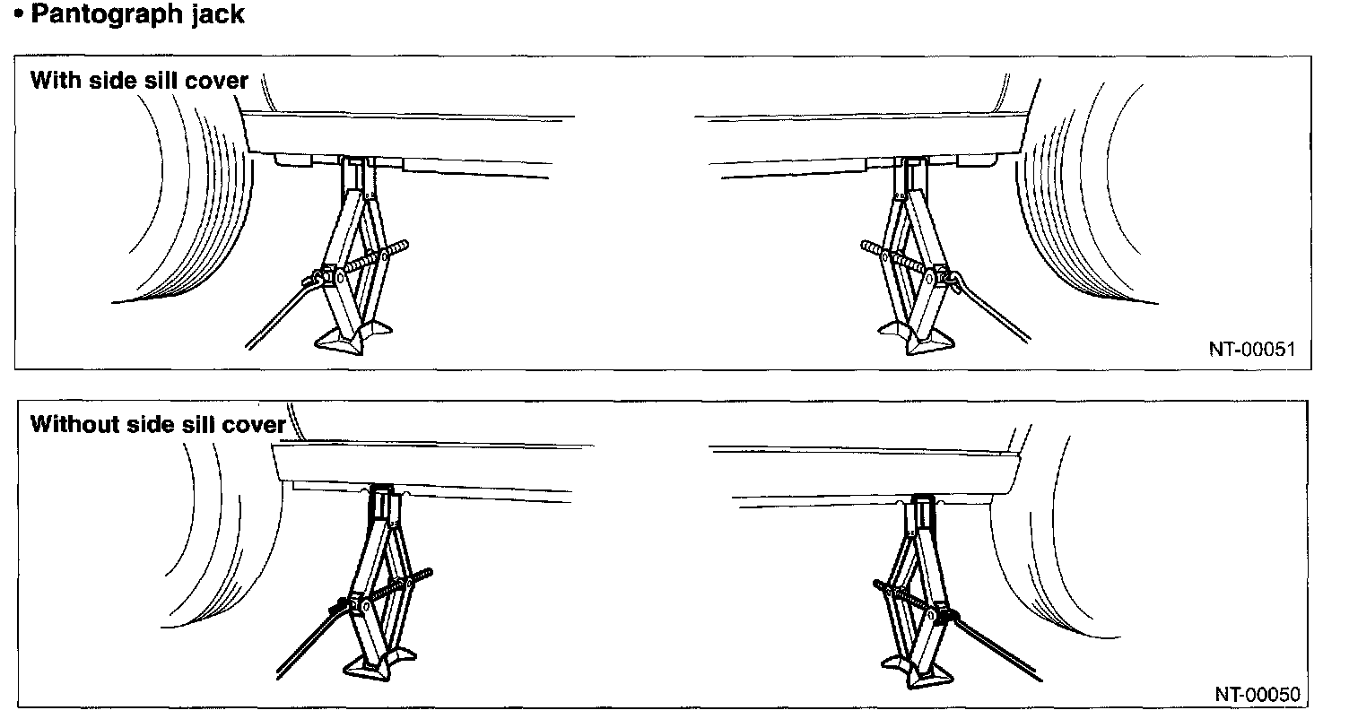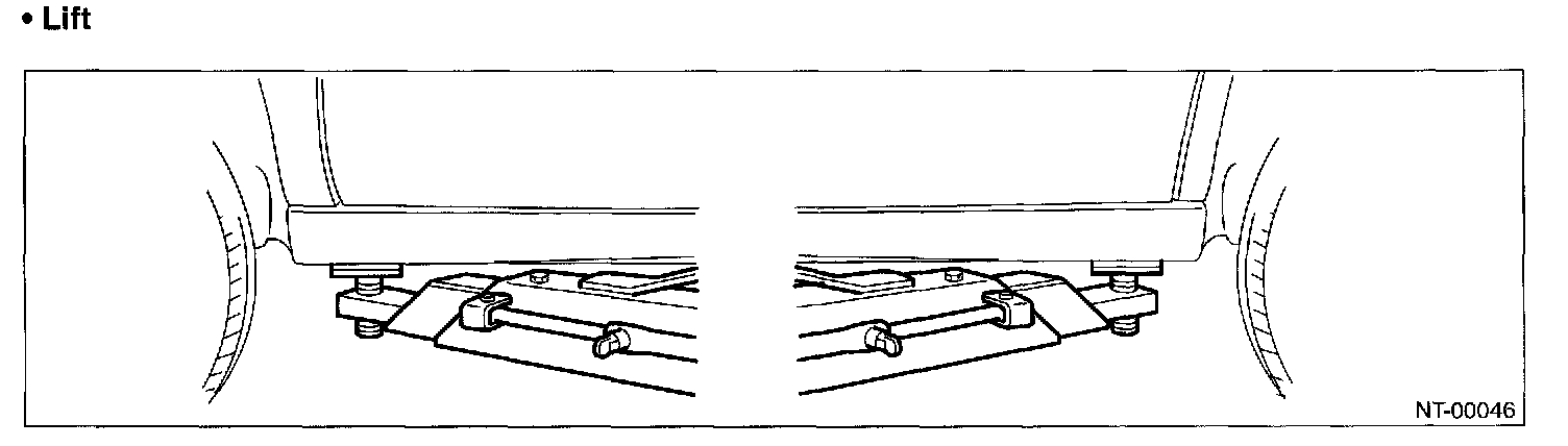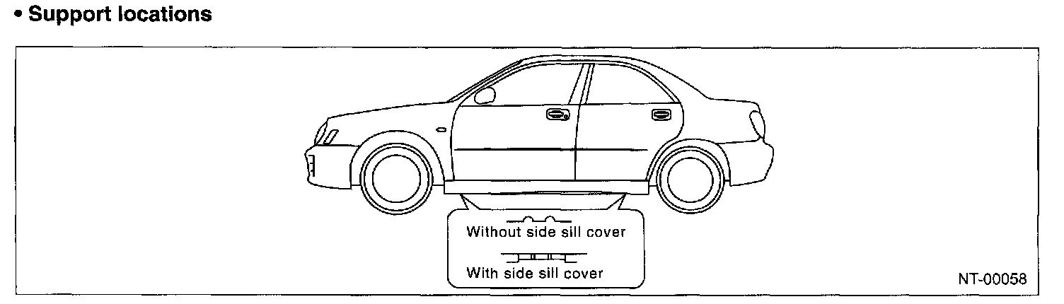 When using a lift or jack-ridged rack to raise a vehicle, always follow the instructions concerning jack-up points and weight limits to prevent the vehicle from falling, which could result in injury. Be especially careful to make sure the vehicle is balanced before raising it.