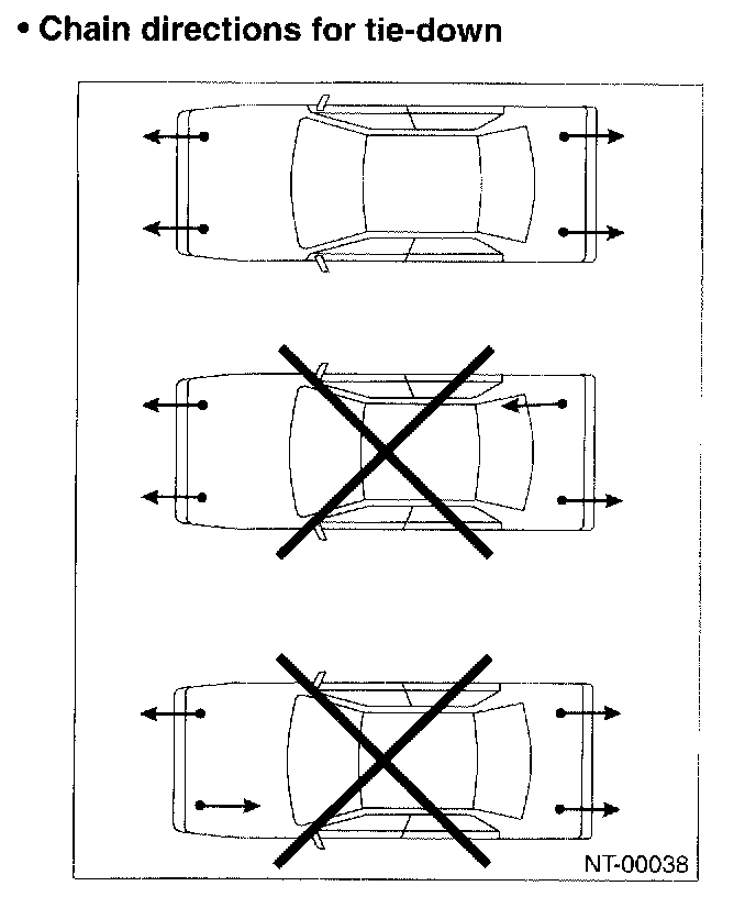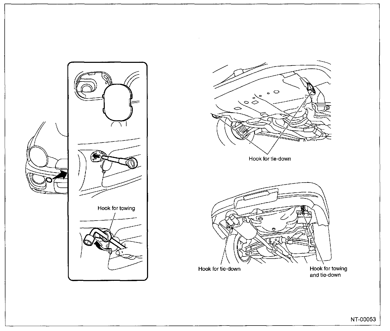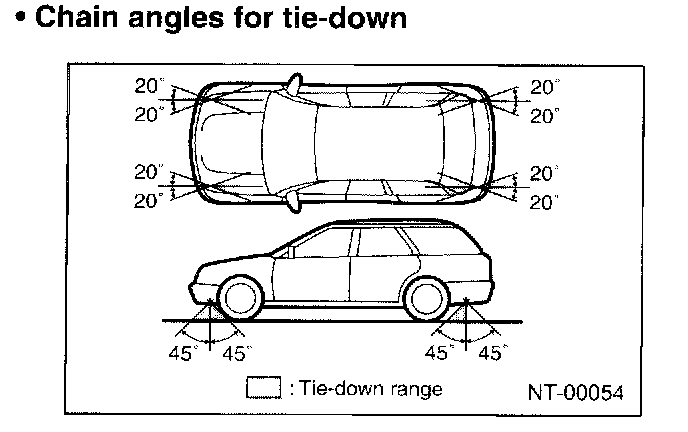 Tie downs are used when transporting vehicles and when using the chassis dynamo. Attach tie downs only he specified points on the vehicle.