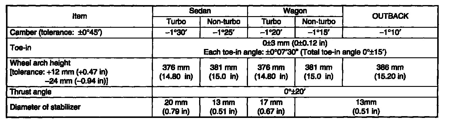 ^ The other items indicated in the specification table cannot be adjusted. If the other items exceeds specifications, check the suspension parts and connections for deformities; replace with new ones as required.