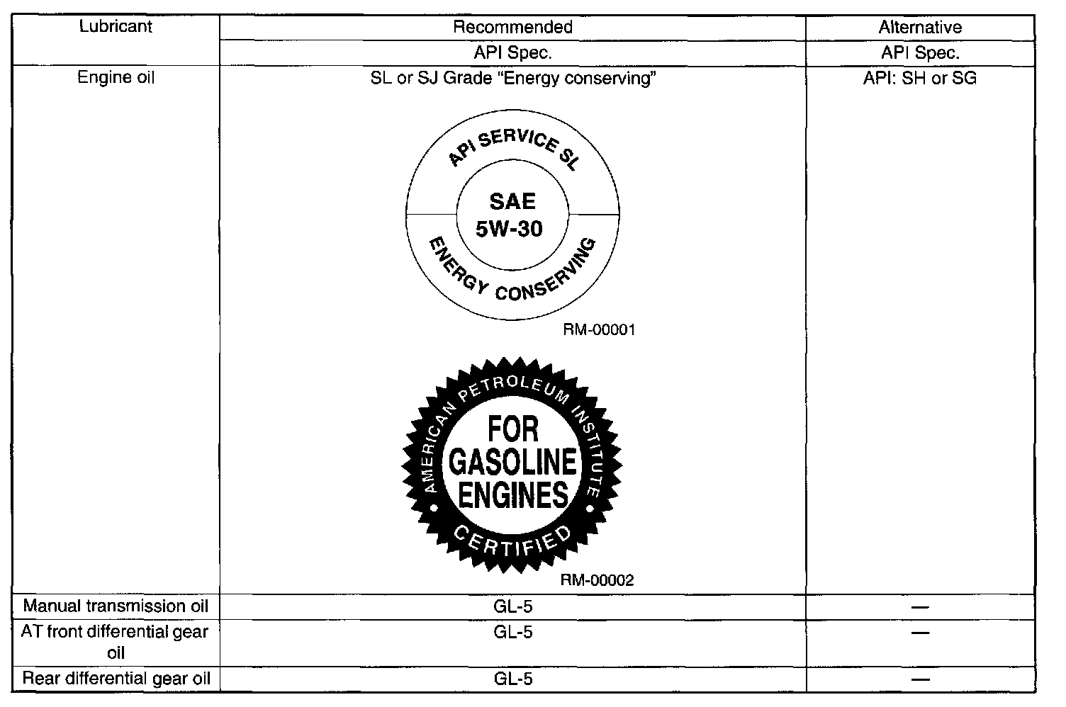 Use either the lubricants in the table above or equivalent lubricants. See the table above to choose the correct SAE viscosity.
