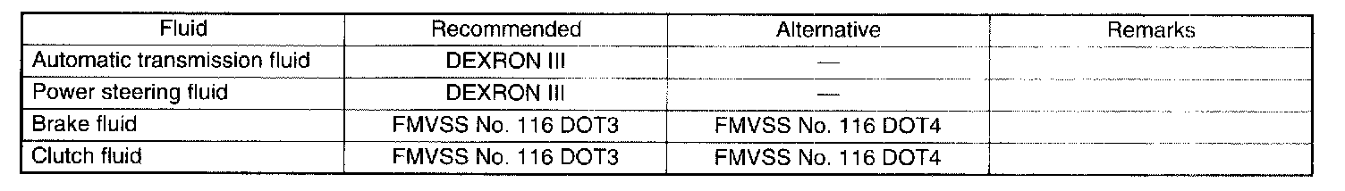 Use the fluids specified in the table above. Do not mix two different kinds or makes of fluid.