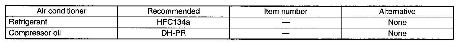 Standard air conditioners on Subaru vehicles use HFC134a refrigerant. Do not mix it with other refrigerants. Also, do not use any air compressor oil except for DH-PR.