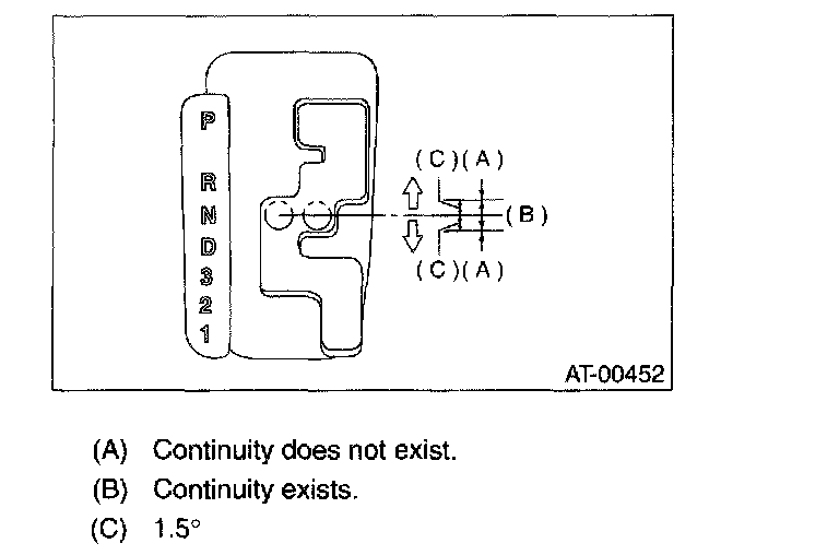 3) Check if there is continuity at equal points when the select lever is turned 1.5° in both directions from N range.