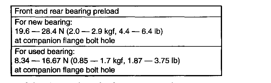 2) Adjusting preload for front and rear bearings:
