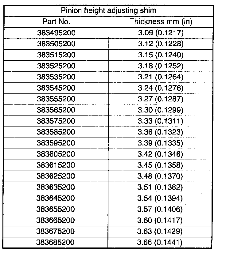 3) Obtain the thickness of pinion height adjusting shim to be inserted from the following formula, and replace the temporarily installed shim with this one.