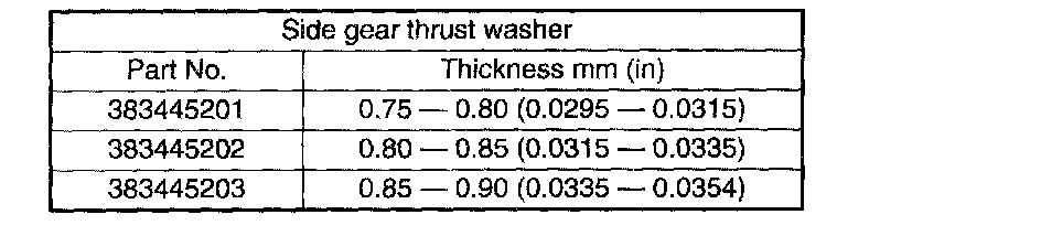 2) Adjust the backlash as specified by selecting side gear thrust washer.