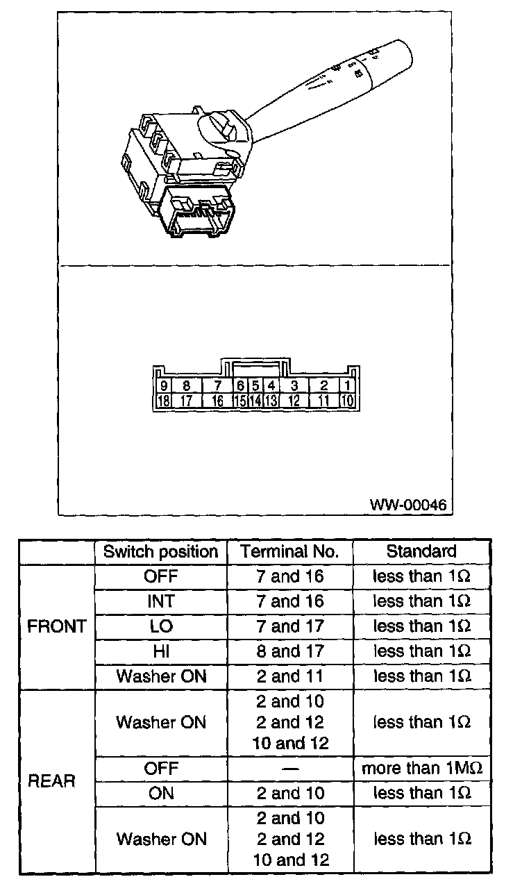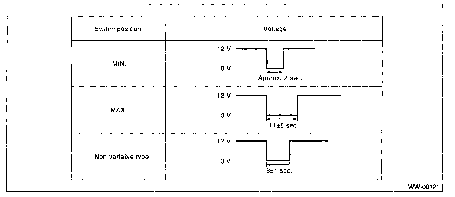 3. Apply battery voltage to switch terminals 16 and 2, and inspect the voltage of terminals 7 and 2. (Measure the voltage from after the second time the wiper stops.)