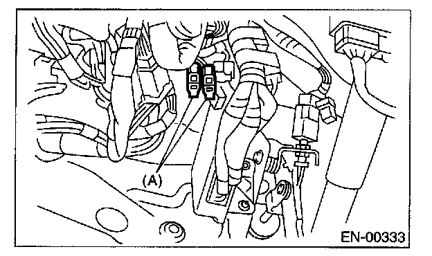 4. Connect the test mode connector (A) at the lower portion of the instrument panel (on the driver's side).