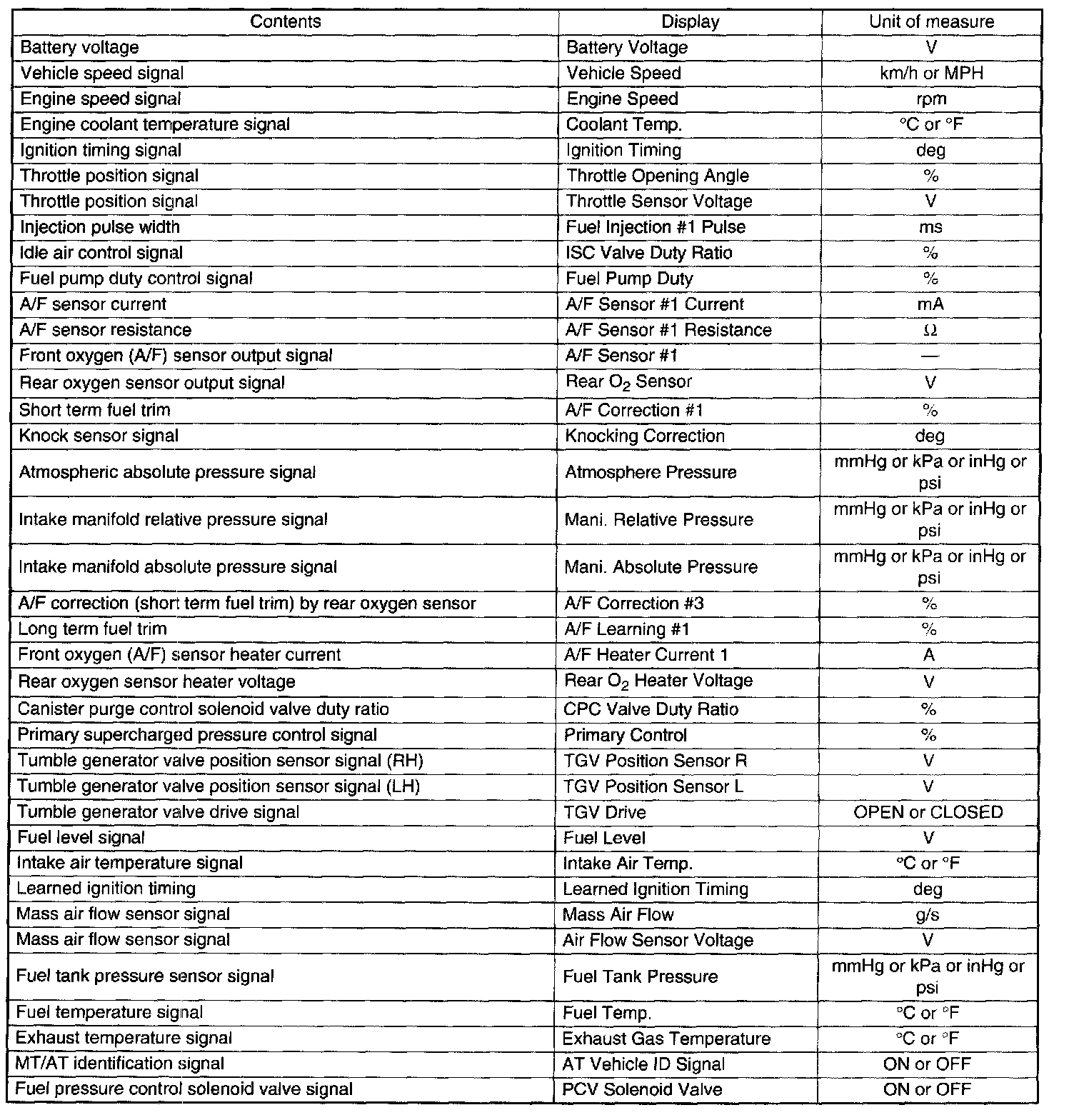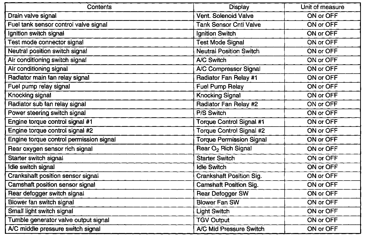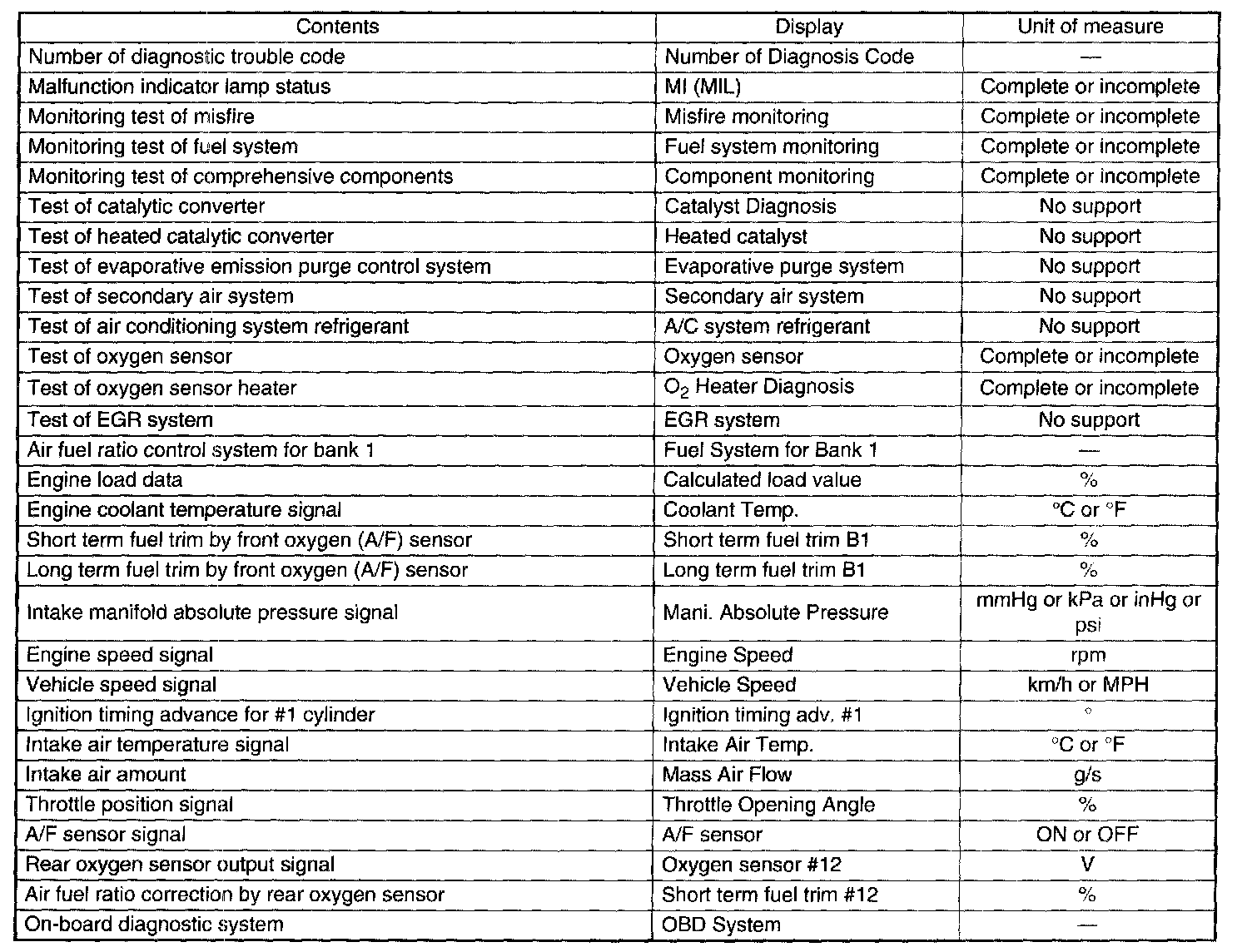 READ CURRENT DATA FOR ENGINE. (OBD MODE)