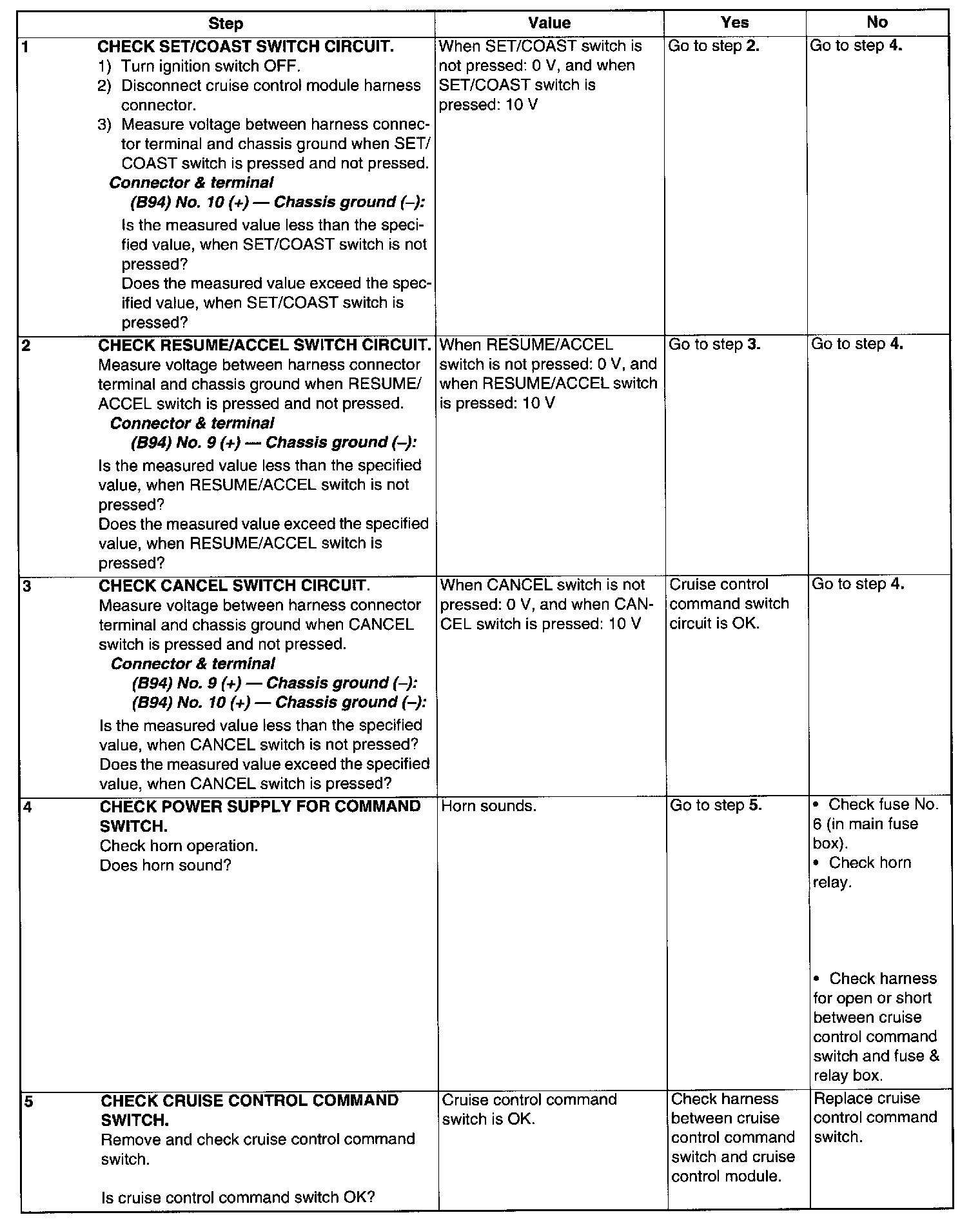 CHECK CRUISE CONTROL COMMAND SWITCH