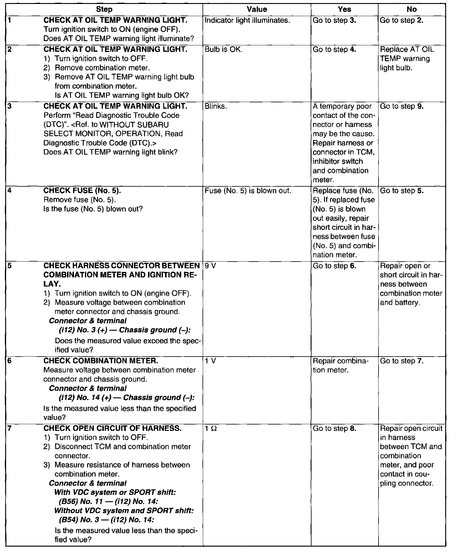 Diagnostic Procedure For AT Oil Temp Warning Light