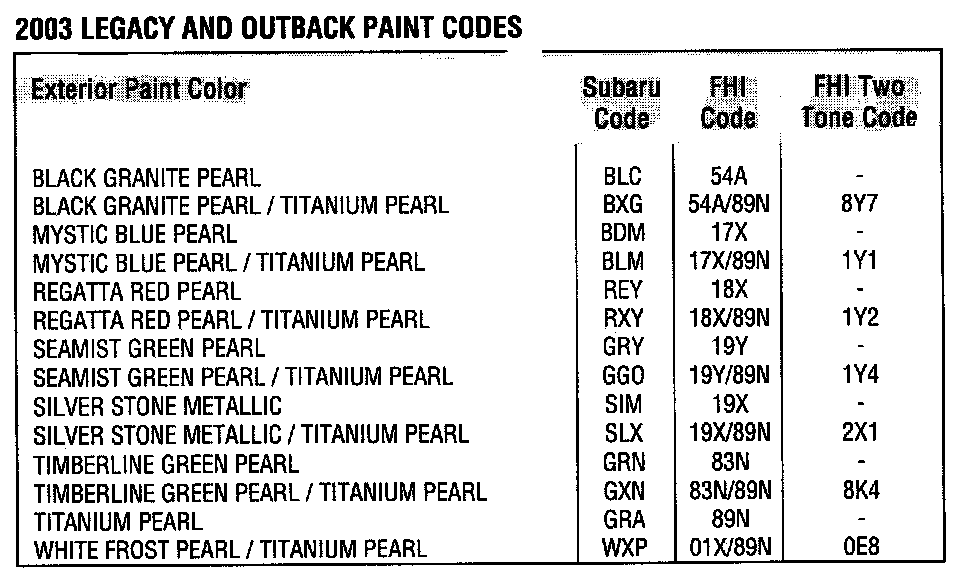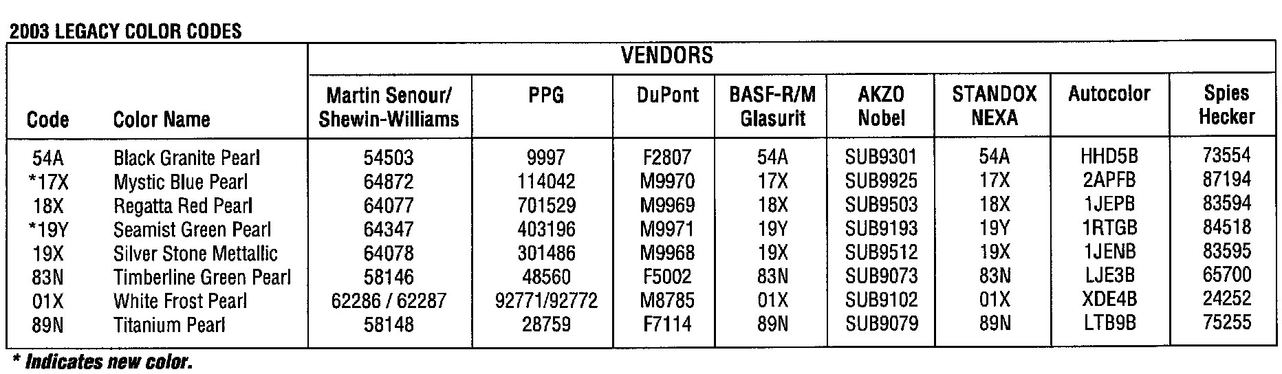 codes are found on the VIN plate located on the Left Strut Tower. The color code is depicted by a solid color or by a combined upper and lower color code.