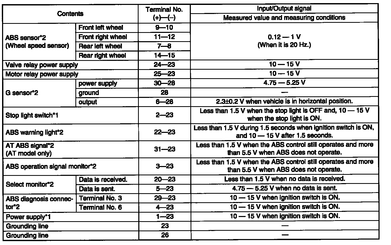 Control Module I/O Signal*1: Measure the I/O signal voltage after removing the connector from the ABSCM&H/U terminal.