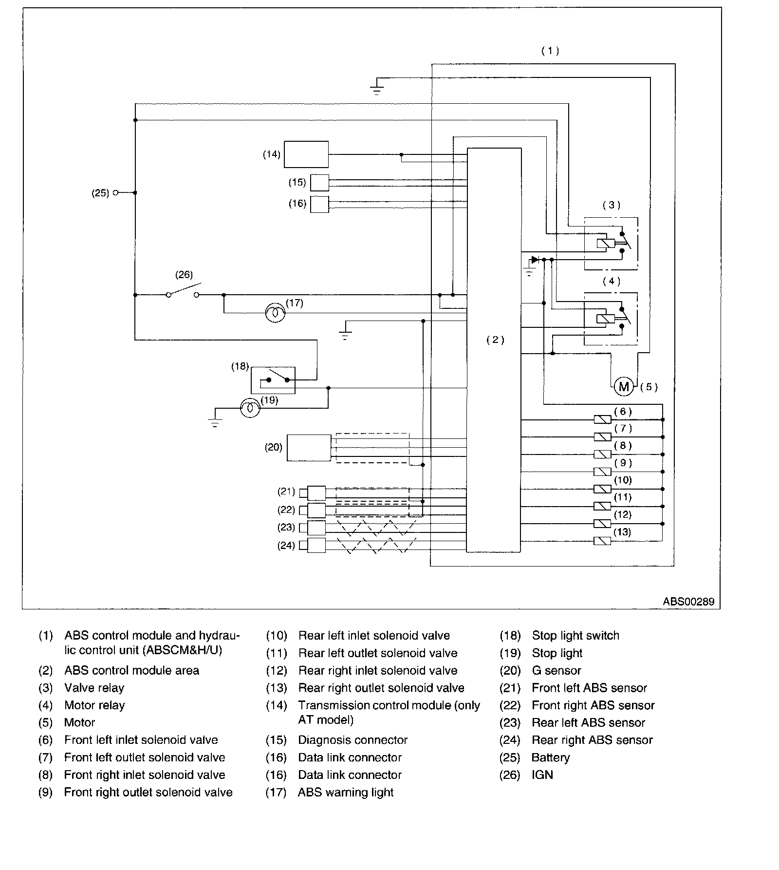 ^ The terminal numbers in the ABS control module and hydraulic control unit connector are as shown in the figure.