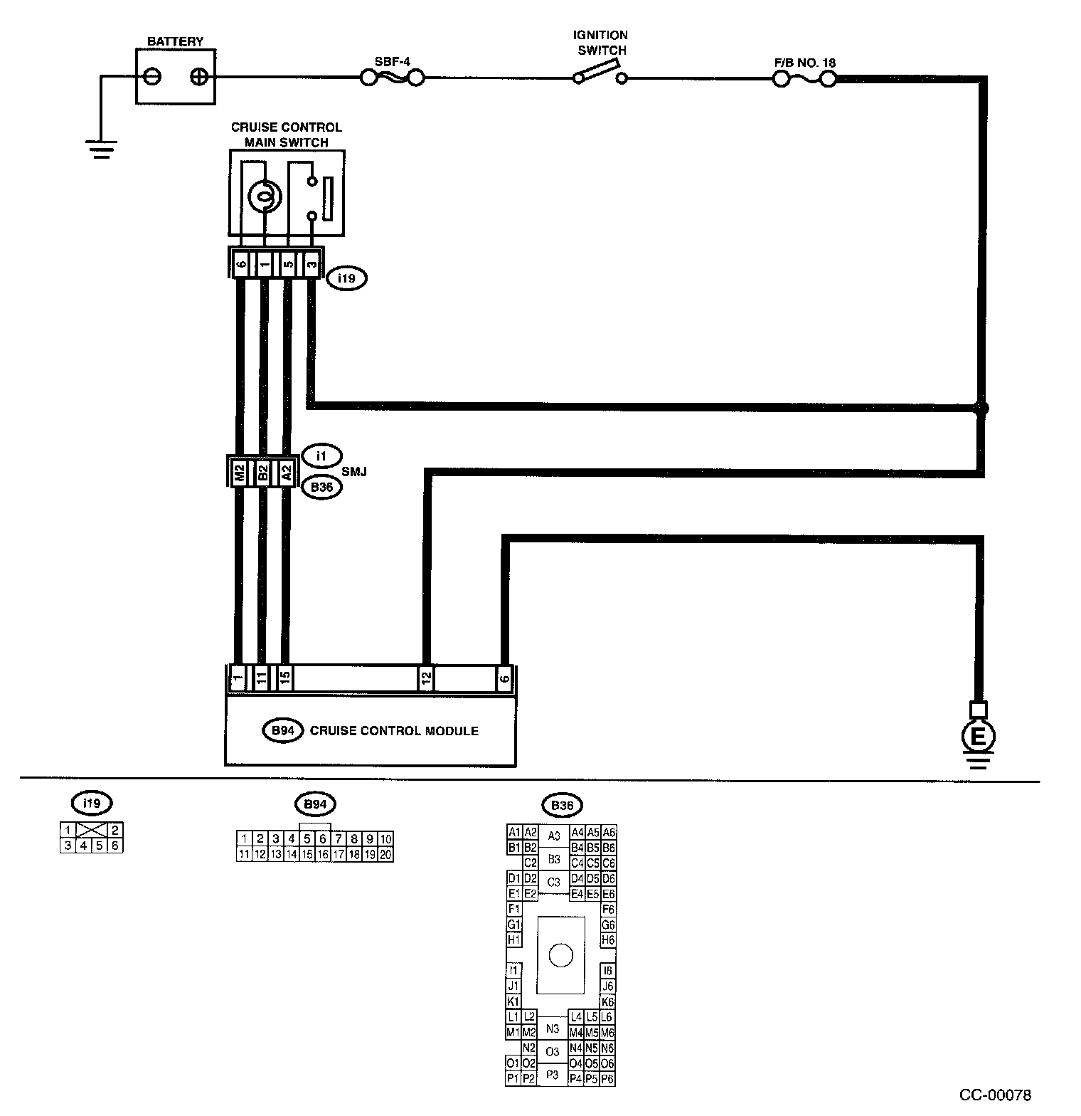 When the main relay (built-in cruise control module) operates, the main switch circuit is in normal condition.
