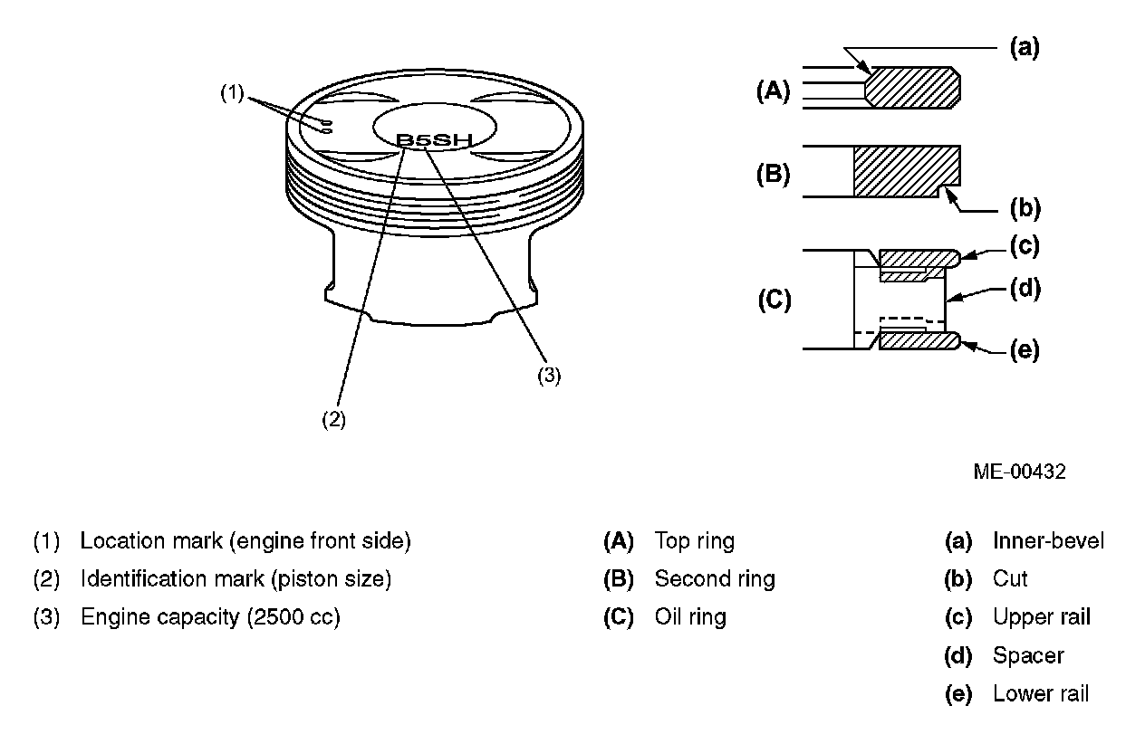 - The piston pin is offset either downward (Nos. 1 and 3 pistons) or upward (Nos. 2 and 4 pistons).