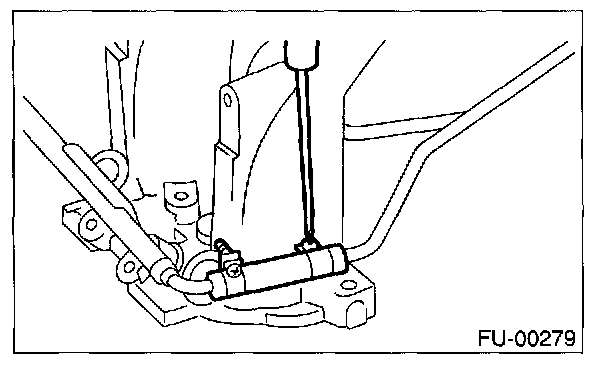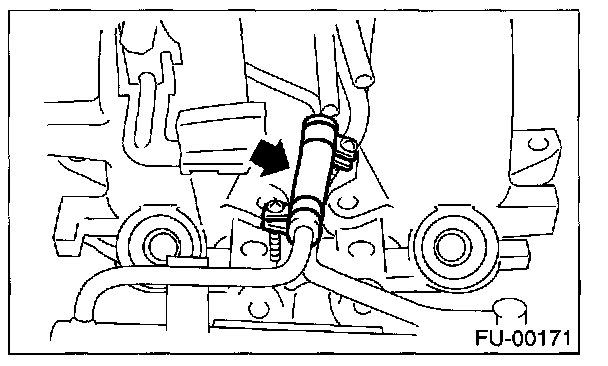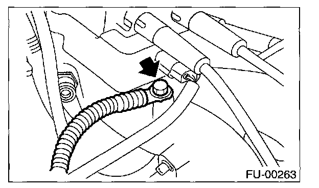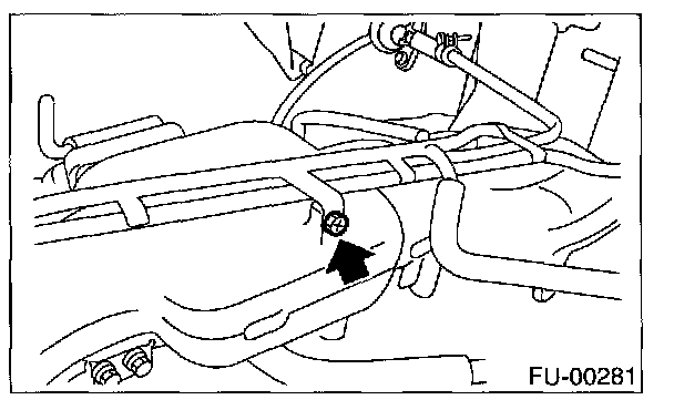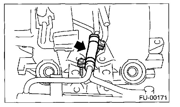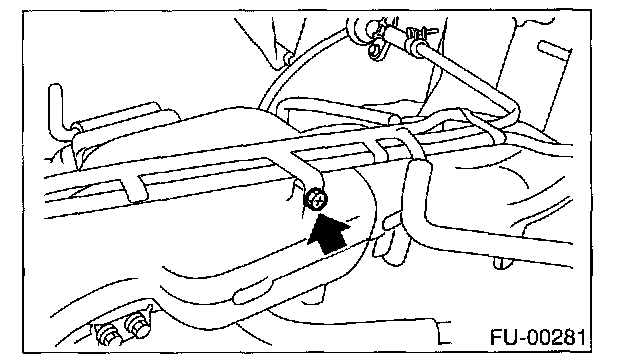 20. Loosen clamp which holds front left side fuel hose to injector pipe and remove the pipe from clamp.