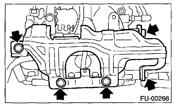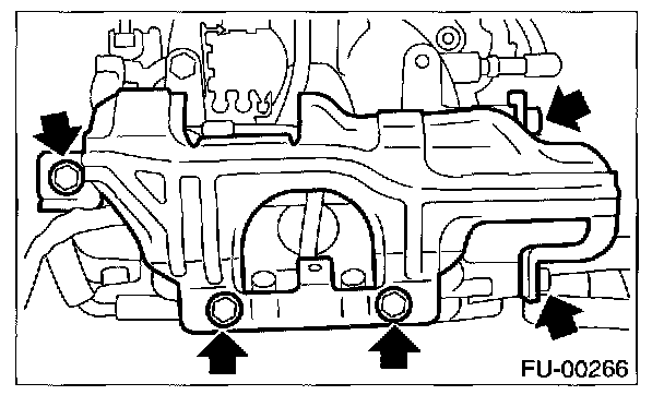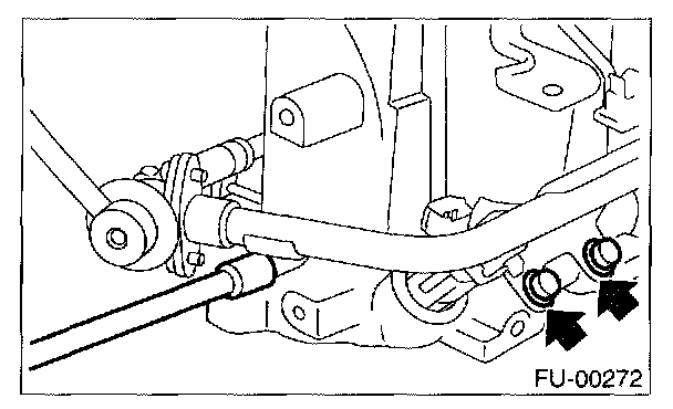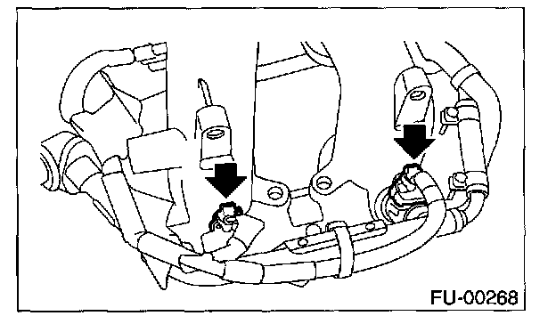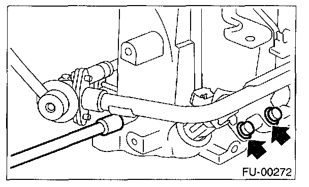17. Remove two bolts which hold fuel pipes on the left side of intake manifold.