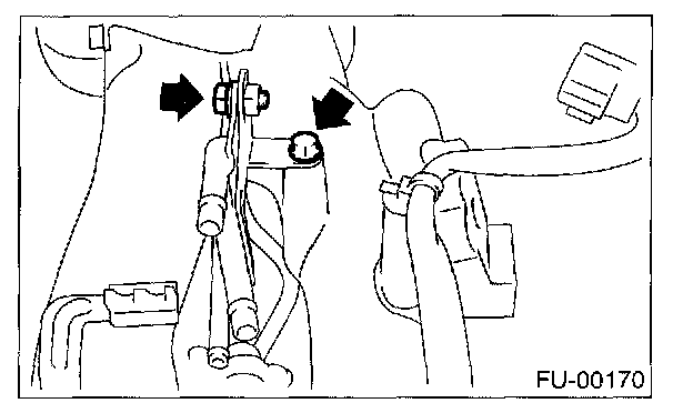 2. Tighten bolt which installs fuel pipes on intake manifold.