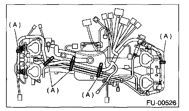 13. Remove harness bands (A) which hold engine harness onto intake manifold.