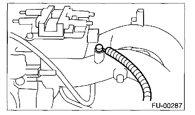 7. Disconnect pressure regulator vacuum hose from intake manifold.