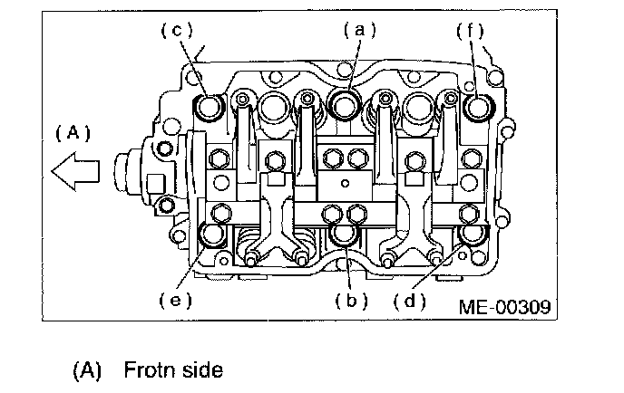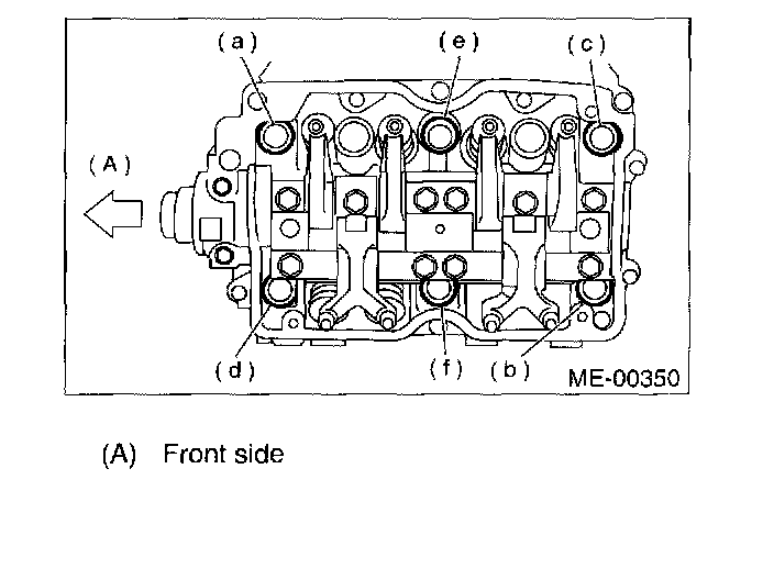 NOTE: Leave bolts (a) and (b) engaged by three or four threads to prevent cylinder head from falling.