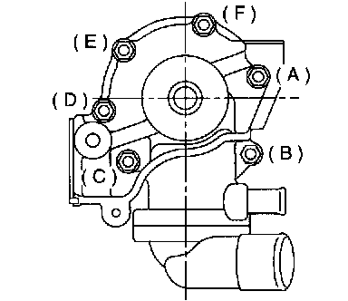 19. Loosen bolts in alphabetical sequence as shown in figure and remove water pump.
