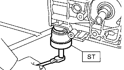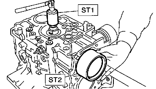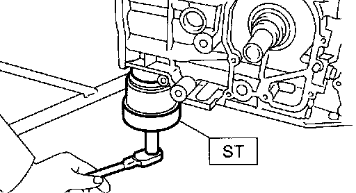 b. Using ST1, turn crankshaft so that #1 and #2 connecting rods are set at bottom dead center.