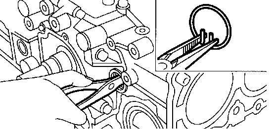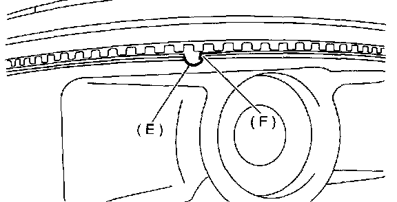 ^ Align flat surface of oil pump's inner rotor with crankshaft before installation.